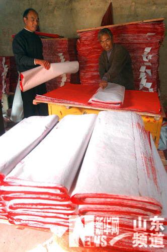 ·11月1日,山東全年紅紙業有限公司職工正包裝紅紙準備外銷