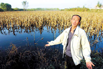 黃金周期間,記者曾接到襄汾新城鎮(zhèn)橋子溝不少村民反映,他們的玉米地被上游鄧莊鎮(zhèn)各個村子里造紙廠的工業(yè)污水淹沒,眼巴巴地看著上百畝的玉米卻沒法收獲,而且還投告無門。本應是秋播的大忙季節(jié),可襄汾縣新城鎮(zhèn)橋子溝村村民楊文亮卻眼看著玉米棒子掛在稈上無法收獲,秋播更不用說了。