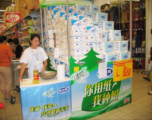 多年來,APP旗下的金紅葉紙業生產的“真真”牌生活用紙,以其物美價廉的定位,走進了千萬戶普通老百姓的生活。金紅葉生產的紙手帕、衛生紙、濕紙巾、餐巾紙、廚房紙巾等,全部采用不含熒光劑的100%純木漿,并經過450℃高溫處理,其生產的產品既衛生,又符合環保要求。依靠令客戶放心的產品品質、細分市場的營銷策略和合理配送的物流管理,在中國生活用紙市場上,金紅葉占據了15%的市場份額!拔嵮拧、“清風”、“真真”等主要品牌,連續多年排名居同行業之首。