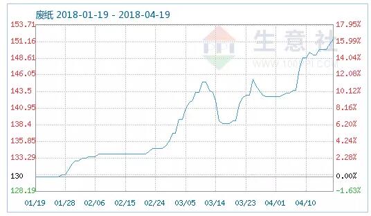 創貿易戰風口浪尖上,廢紙價格淡季瘋漲 眼下正是中美貿易戰的風口浪尖,一場史無前例的大國貿易戰沖擊著國內各行各業。盡管造紙業尚未列入增收關稅的名單中,但由于美國對華出口商品中廢紙占比較高,整個行業已是山雨欲來風滿樓。每年春節之后原本是造紙業的傳統淡季,但讓業界人士意外的是,近來國內廢紙的價格卻是一路逆市瘋漲。 根據有關統計顯示,4月14日-4月15日全國35家造紙廠的最新廢紙收購價顯示,其中29家紙企都上調了廢紙價,幅度在20-200元/噸,達到2500元/噸以上。 從生意社統計的廢紙行情走勢來看,目前廢紙價基本是已經呈直線上升趨勢。4月17日,山東廢紙價格已達到2500元/噸至2600元/噸,廣東福建一帶更是達到了2800元/噸左右。與3個月前相比,國內廢紙價漲幅更是達到了11.85%之高;比去年同期更是達到近四成。 中國廢紙進口量年年走低 一直以來,中國廢紙回收量在全球范圍內首屈一指,2016年廢紙回收量達到了4964萬噸,分別約占世界和亞洲廢紙回收量的20%和50%。但是,中國2016年廢紙回收率卻僅為47.6%,遠低于日本的79%和韓國的90%。 同時,中國廢紙消費量在全球遙遙領先,2015年消費量為7923萬噸,占世界和亞洲廢紙消費量的33%和59.3%。因此,中國目前的廢紙收購格局呈現回收量大、效率低的現象。