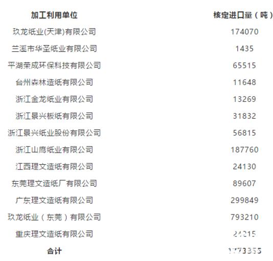 審批恢復正常,核定量創三個月新高 按正常進度,每個月固廢中心會在月中和月末公布兩次審批名單,但是六月份只公布了一次,而且廢紙核定量為0。因此,此次第15批名單公布放在月初(第一個工作日),可以看做是對六月份的一次補充。這次超過177萬噸的核定量,也是從4月份以來的新高。 但是,要強調的是,盡管這一次量很大,但是并沒有改變之前的供應規模。,在之前的文章已經提到過,今年每個月的廢紙平均審批量約200萬噸,5月份受海關臨時性措施的影響,下降比較多。 現在,審批量再次放大,應該是生態環境部、海關、檢驗檢疫公司、造紙企業和境外貿易商已經為新的進口流程做好了準備。 纖維補充量有折扣 本次名單中,理文在東莞的兩家企業廣東理文和東莞理文一共獲得了39萬噸的額度,但是這39萬噸同時標注了全部是屬于加工貿易,也就是說,用這些廢紙生產的原紙,將來將直接出口或者作為其他商品的包裝用于出口,而不能在國內銷售或使用。同樣的,東莞玖龍也有10萬噸額度屬于加工貿易。加工貿易的額度約占了總核定量的23%。 眾所周知,我國造紙行業缺乏原料,無論是進口的木漿還是廢紙,說白了都是補充國內造紙用的纖維,都是對國產造紙原料不足的補充。但是加工貿易的存在,就意味著本來進到國內可以循環使用的這部分纖維資源,在國內加工為成品紙后又流出了國內。因此,對國內的供應只能起到一時緩解,解決原料不足的根本方法還是要有大量的纖維原料從國外進口,并且要在國內實現循環使用才行。 TOP7占主導 截至已經公布的15批名單,一共有66家企業獲得進口許可,其中獲得許可量超過30萬噸的企業有12家,這12家的總核定量是971.6267萬噸,占總量的77%。 這12家中,玖龍有3家企業,理文有2家,山鷹有3家,再加上廣紙、華泰、建暉和聯盛,共有7家紙業集團,這其中又以玖龍、理文和山鷹為主。 由于這些企業可以獲得外廢的支持,因此這些企業將比其他企業在生產成本上有更大的優勢。這也可以看做是國家對大型企業做大做強的支持!