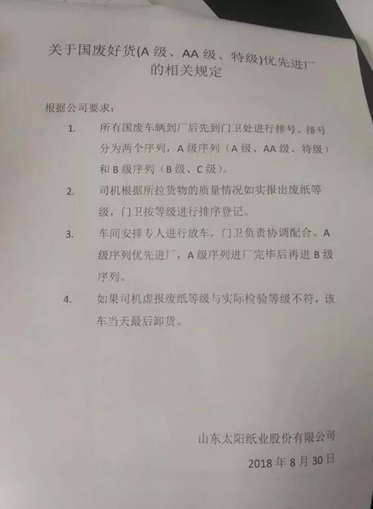 二、關于國廢好貨(A級、AA級、特級)優先進廠的相關規定: