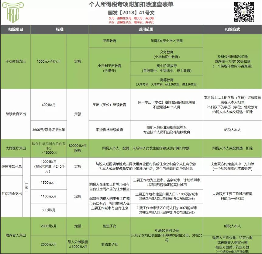 個(gè)人所得稅專項(xiàng)附加扣除速查表單