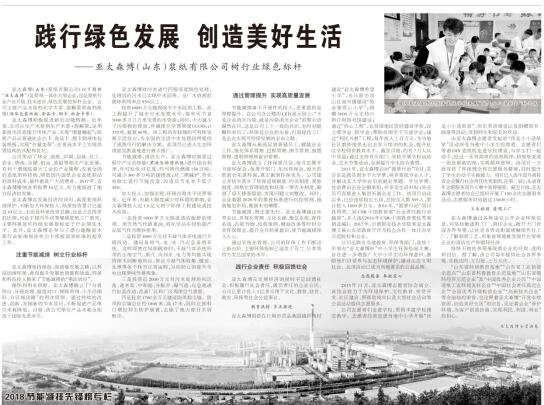 1月20日,中國環(huán)境報(bào)社在北京發(fā)布了2018年國內(nèi)國際十大環(huán)境新聞。會(huì)上還為環(huán)保優(yōu)秀品牌企業(yè)、節(jié)能減排先鋒企業(yè)、環(huán)保誠信企業(yè)授牌,亞太森博(山東)漿紙有限公司被評(píng)為節(jié)能減排先鋒企業(yè)。
