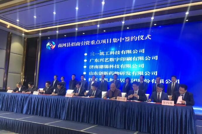 濟南市領導、市投促局領導、商河縣投資促進服務中心、經信局、發改委、交通運輸局、衛計局、民政局、貿促會、文廣新局、旅游公共服務中心、金融辦、商務信息中心、統戰部(工商聯)、經濟開發區管委會等部門領導及各鎮黨委書記參加了本次簽約儀式。 活動當天,商河經濟開發區管委會許振東主任與廣東興藝數字印刷股份有限公司董事長黃健權先生簽訂項目投資協議。這意味著,廣東興藝數字印刷股份有限公司與山東葉華紙制品包裝有限公司合作投資的“山東興藝數字印刷有限公司”項目正式落地。