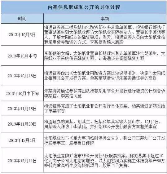 根據(jù)行政處罰決定書,內(nèi)幕信息是“太陽紙業(yè)正在籌劃相關(guān)非公開發(fā)行股票事宜”。該信息具體形成過程如下: