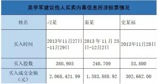 此外,內(nèi)幕信息敏感期內(nèi),吳學(xué)軍還建議刁某、秦某、史某福買入“太陽紙業(yè)”,被證監(jiān)會處以60萬元罰款。因此,吳學(xué)軍共計(jì)被罰沒2268.38萬元。