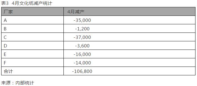 紙張供應(yīng)大幅減少 3月進(jìn)入傳統(tǒng)出版旺季,然而2019年3月和4月紙廠的停機(jī)卻沒有減少,4月文化紙市場總體減少供應(yīng)10萬噸左右,如表3。前期市場普遍關(guān)注的某廠的新紙機(jī)產(chǎn)能也在4月緩慢釋放,但是沒有緩解市場的緊張供應(yīng)。各工廠都出現(xiàn)超接訂單的情況,當(dāng)月訂單無法完成交貨,部分工廠出現(xiàn)當(dāng)月無法交貨的訂單、次月出現(xiàn)取消訂單的情況。