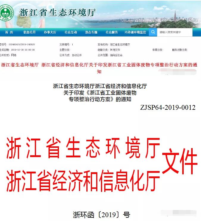 省檢察院、省高級(jí)人民法院、各設(shè)區(qū)市人民政府、省級(jí)各有關(guān)單位: 《浙江省工業(yè)固體廢物專項(xiàng)整治行動(dòng)方案》已經(jīng)省政府同意,現(xiàn)印發(fā)你們,請(qǐng)認(rèn)真貫徹實(shí)施。 附件:1、浙江省工業(yè)固體廢物專項(xiàng)整治行動(dòng)方案 2、省級(jí)各有關(guān)單位名單 浙江省生態(tài)環(huán)境廳 浙江省經(jīng)濟(jì)和信息化廳 2019年 月 日 (此件公開發(fā)布) 附件1 浙江省工業(yè)固體廢物專項(xiàng)整治行動(dòng)方案 浙江省工業(yè)企業(yè)數(shù)量眾多,工業(yè)固體廢物產(chǎn)生量大,污染防治任務(wù)繁重。為貫徹省委省政府高標(biāo)準(zhǔn)打好污染防治攻堅(jiān)戰(zhàn)決策部署,高質(zhì)量打贏工業(yè)固體廢物殲滅戰(zhàn),全面提升工業(yè)固體廢物污染防治和綜合利用水平,制定本方案。 一、總體要求 加強(qiáng)工業(yè)固體廢物污染防治,持續(xù)提升工業(yè)固體廢物綜合利用水平是貫徹習(xí)近平生態(tài)文明思想、推進(jìn)美麗浙江建設(shè)的必然要求,是大力發(fā)展循環(huán)經(jīng)濟(jì)、維護(hù)生態(tài)環(huán)境安全、保障人民群眾環(huán)境權(quán)益的重要舉措。各地要統(tǒng)一思想,提高認(rèn)識(shí),切實(shí)增強(qiáng)責(zé)任感、緊迫感和使命感,加強(qiáng)組織領(lǐng)導(dǎo),以集聚化、產(chǎn)業(yè)化、市場(chǎng)化、生態(tài)化為導(dǎo)向,以提高資源利用效率為核心,全面提升工業(yè)固體廢物資源綜合利用水平,盡快構(gòu)建從產(chǎn)生、貯存、轉(zhuǎn)運(yùn)到利用處置全過程的工業(yè)固體廢物管理體系,助推美麗浙江建設(shè),保障浙江高質(zhì)量發(fā)展。 二、主要目標(biāo) 到2020年底,形成多途徑、高附加值的工業(yè)固體廢物綜合利用發(fā)展新格局,一般工業(yè)固體廢物綜合利用率保持在95%以上;建立健全“源頭嚴(yán)防、過程嚴(yán)管、后果嚴(yán)懲”的工業(yè)危險(xiǎn)廢物環(huán)境監(jiān)管體系,工業(yè)危險(xiǎn)廢物利用處置率達(dá)96%以上。 到2021年底,工業(yè)固體廢物綜合利用水平顯著提升,一般工業(yè)固體廢物綜合利用率達(dá)96%以上;緦(shí)現(xiàn)縣(市)域內(nèi)一般工業(yè)固體廢物利用處置能力與產(chǎn)生量相匹配,工業(yè)危險(xiǎn)廢物利用處置率達(dá)98%以上。 三、主要任務(wù) 。ㄒ唬┘訌(qiáng)數(shù)據(jù)分析,提高整治措施精準(zhǔn)化 1、抓好工業(yè)固體廢物數(shù)據(jù)填報(bào)。各地要以第二次全國污染源普查數(shù)據(jù)為基準(zhǔn)底數(shù),加強(qiáng)培訓(xùn)指導(dǎo),督促工業(yè)固體廢物產(chǎn)生單位于2020年底前登錄浙江省固體廢物管理信息系統(tǒng)(http://223.4.65.2:8080/SHWMM/index,以下簡(jiǎn)稱“省級(jí)信息系統(tǒng)”),實(shí)時(shí)填報(bào)工業(yè)固體廢物產(chǎn)生、轉(zhuǎn)移、利用處置等數(shù)據(jù)。各地要組織鄉(xiāng)鎮(zhèn)(街道、工業(yè)園區(qū)、產(chǎn)業(yè)園區(qū))加強(qiáng)對(duì)轄區(qū)工業(yè)固體廢物產(chǎn)生者的督導(dǎo),實(shí)現(xiàn)工業(yè)固體廢物基礎(chǔ)數(shù)據(jù)的實(shí)時(shí)動(dòng)態(tài)更新。(省生態(tài)環(huán)境廳、省經(jīng)信廳、省能源局,各市、縣(市、區(qū))人民政府落實(shí);列第一位的為牽頭指導(dǎo)部門,以下均需各市、縣(市、區(qū))政府落實(shí),不再列出) 2、加強(qiáng)統(tǒng)計(jì)數(shù)據(jù)研判應(yīng)用。各地要加強(qiáng)對(duì)統(tǒng)計(jì)數(shù)據(jù)的分析研判,系統(tǒng)掌握轄區(qū)重點(diǎn)行業(yè)、重點(diǎn)企業(yè)、重點(diǎn)產(chǎn)廢種類的情況,作為編制當(dāng)?shù)毓I(yè)固體廢物專項(xiàng)整治實(shí)施方案的決策依據(jù),據(jù)此針對(duì)性提出工業(yè)固體廢物利用處置能力建設(shè)計(jì)劃及行業(yè)整治、項(xiàng)目準(zhǔn)入、源頭減量、執(zhí)法監(jiān)管等相關(guān)政策措施。根據(jù)《重點(diǎn)排污單位名錄管理規(guī)定(試行)》建立危險(xiǎn)廢物重點(diǎn)監(jiān)管單位清單,依法將工業(yè)固體廢物納入排污許可管理。(省生態(tài)環(huán)境廳、省能源局、省經(jīng)信廳) 。ǘ⿵(qiáng)化源頭管控,推動(dòng)廢物產(chǎn)生減量化 3、大力推進(jìn)清潔生產(chǎn)審核。鼓勵(lì)引導(dǎo)工業(yè)企業(yè)開展自愿性清潔生產(chǎn)審核。以電力、熱力生產(chǎn)和供應(yīng)業(yè),非金屬礦采選業(yè),黑色金屬冶煉和壓延加工業(yè),非金屬礦物制品業(yè),造紙和紙制品業(yè)等工業(yè)固體廢物產(chǎn)生量大的行業(yè)為重點(diǎn),依法對(duì)相關(guān)企業(yè)實(shí)施強(qiáng)制性清潔生產(chǎn)審核。(省經(jīng)信廳、省生態(tài)環(huán)境廳按職責(zé)分別牽頭) 4、加大減量化工藝技術(shù)改造力度。開發(fā)應(yīng)用有利于減少工業(yè)固體廢物產(chǎn)生量的生產(chǎn)工藝及廢水、廢氣治理技術(shù),開展固體廢物減量化工藝改造。(省科技廳、省能源局、省經(jīng)信廳)對(duì)工業(yè)固體廢物產(chǎn)生量大、工藝裝備落后、處置出路難的建設(shè)項(xiàng)目,嚴(yán)格審查環(huán)境影響評(píng)價(jià)有關(guān)內(nèi)容。鼓勵(lì)工業(yè)固體廢物產(chǎn)生量大的企業(yè)在場(chǎng)內(nèi)開展綜合利用處置,有效減少工業(yè)固體廢物源頭產