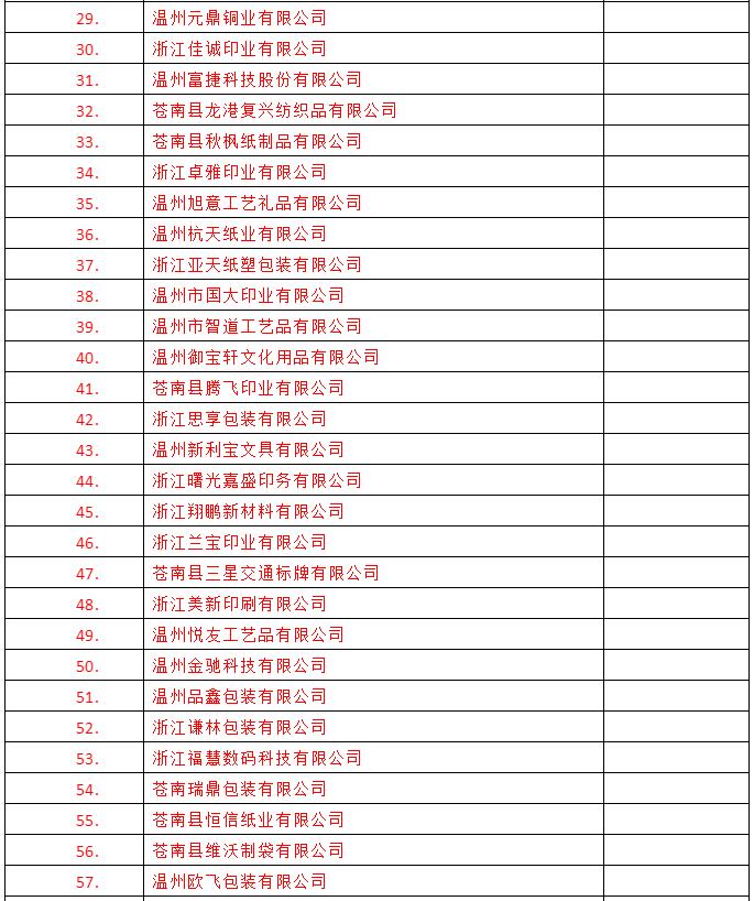 導語:截至2月18日,浙江省龍港市發布:規上印刷企業復工復產名單(72家);規上印刷企業復工復產已備案名單(87家);規下印刷企業已復工名單(55家);商貿(印刷)企業復工名單(12家)。具體名單如下:
