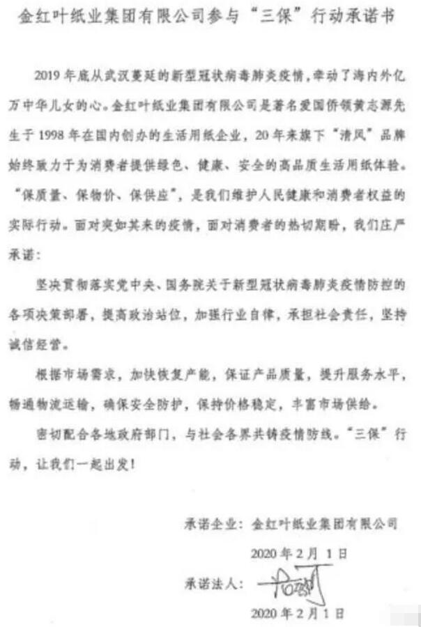 承諾企業(yè):金紅葉紙業(yè)集團(tuán)有限公司