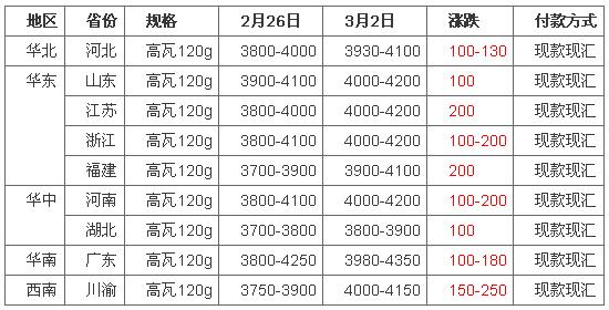 木漿:3月2日進口木漿現貨市場成交偏清淡,業者報盤積極性偏低。河北地區紙廠陸續開機,但開工負荷受限,紙廠消耗前期原料庫存,原料采買積極性偏低,當地貿易商暫無明確報盤,年前烏針含稅價4450元/噸,闊葉漿含稅價3750-3800元/噸。