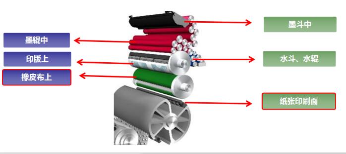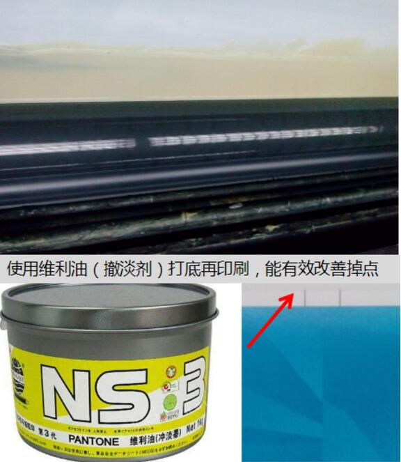 圖7:通過觀察印刷機的第一組橡皮布來初判掉點原因 05、印刷掉點改善措施 既然印刷掉點無法完全避免,紙毛紙屑在印刷過程中也是一個逐漸累積的過程,我們除了定期清洗橡皮布外(常規訂單建議5000張清洗一次),還有哪些方法能改善呢? 用優質棉布(不掉毛)擦拭紙張端面; 嚴控分切邊紙毛紙屑; 分切后再修邊; 印刷前先空壓一遍紙粉; 轉多色組印刷機第一色組先印維利油或撤淡劑再印刷其它顏色(注意油量不要太大,按對應面積實地色墨量的30-40%即可);適當降低油墨粘度,大墨位的顏色盡量放后面色組;專色采用2個色組疊; 清洗水墨輥,墨斗,更換新墨