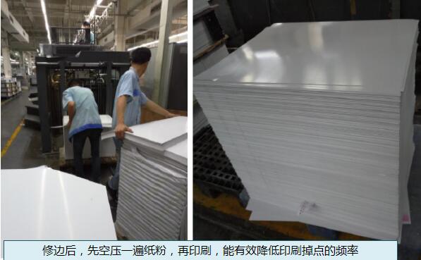 圖9:在印刷機的第一色組,先印刷一層油或撤淡劑 當然,如果您的訂單長期穩定且有一定用量,可以優先考慮平張特規訂單到APP工廠,工廠配備的進口分切機擁有更好的分切質量,并執行嚴格的紙毛紙屑管控標準。