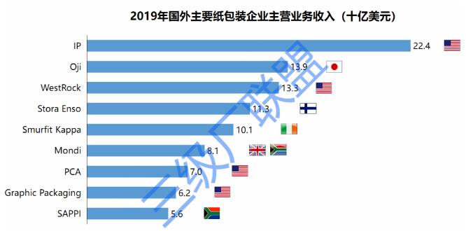 不包含DS Smith,因其尚未披露2019年度業績數據 排名第一的仍然是美國的紙包裝行業領袖國際紙業(IP),年營收224億美元。王子造紙(Oji)、WestRock、Stora Enso分別位列第二、三、四位,2019年營收分別達到139億美元、133億美元、113億美元。 利潤榜前3位的公司分別是國際紙業(12.2億美元);Mondi,9.68億美元;Stora Enso,9.59億美元。從營收榜和利潤榜來看,紙包裝企業的營收能力和盈利能力存在較大割裂。