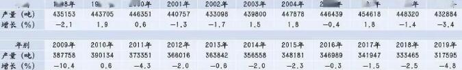 表1:1998~2019年日本印刷油墨產(chǎn)量