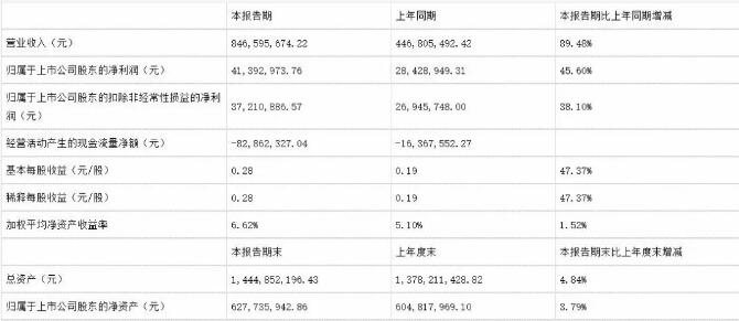 其中,預(yù)計(jì)2020年半年度實(shí)現(xiàn)歸屬于上市公司股東的扣非凈利潤(rùn)約為7900萬元到9100萬元,與上年同期相比增加3715.28萬元到4915.28萬元,同比增長(zhǎng)約88.78%到117.46%。 據(jù)寶鋼包裝公告顯示,業(yè)績(jī)預(yù)增的主要原因是:企業(yè)保持并提升在金屬包裝領(lǐng)域的競(jìng)爭(zhēng)優(yōu)勢(shì),確保整體生產(chǎn)經(jīng)營(yíng)和主營(yíng)業(yè)務(wù)的穩(wěn)定。同時(shí),公司繼續(xù)深入推進(jìn)資本結(jié)構(gòu)優(yōu)化和各項(xiàng)營(yíng)運(yùn)改善措施的覆蓋落實(shí),公司經(jīng)營(yíng)指標(biāo)和運(yùn)營(yíng)效率持續(xù)穩(wěn)步提升,利潤(rùn)較去年同期有所增加。 勁嘉股份 據(jù)勁嘉股份2020年半年度報(bào)告顯示,報(bào)告期內(nèi),公司共實(shí)現(xiàn)營(yíng)業(yè)總收入19.17億元,比上年同期增長(zhǎng)2.83%;實(shí)現(xiàn)歸屬于上市公司股東的凈利潤(rùn)4.15億元,比上年同期減少10.64%。