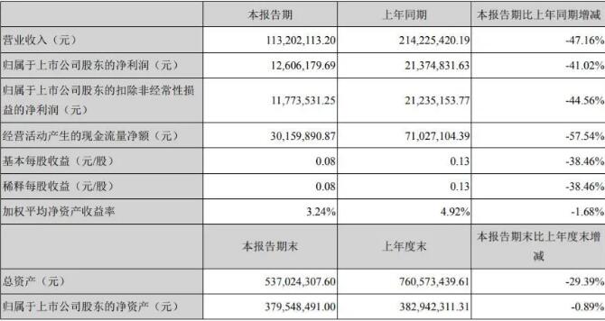 新宏澤 據(jù)新宏澤2020年半年度報(bào)告顯示,上半年實(shí)現(xiàn)營(yíng)業(yè)收入1.13億元,較上年同期下降47.16%,歸屬于上市公司股東的凈利潤(rùn)1260.62萬元,較上年同期下降41.02%。