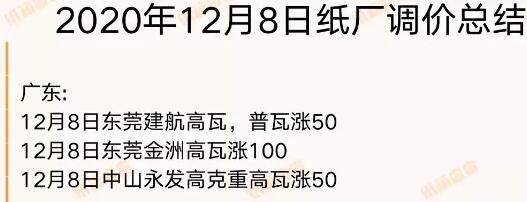 以下是近日廣東瓦楞紙廠120克調價情況(截至12月7日):