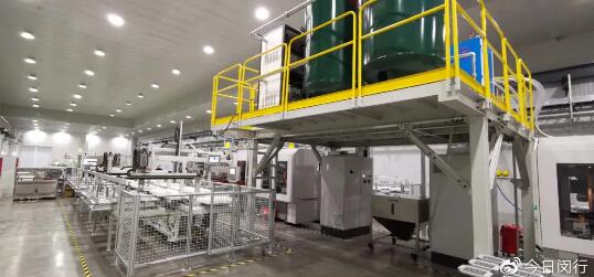 目前,餐盒生產(chǎn)與原有的包裝材料生產(chǎn)車間僅一墻之隔,換上工作服,做好個(gè)人防護(hù)準(zhǔn)備,再經(jīng)過消毒艙,一個(gè)全新的生產(chǎn)車間躍然在目,但見成型、并線、品檢、堆疊、輸送,除去裝箱和碼垛,一切都在流水線上井然完成。