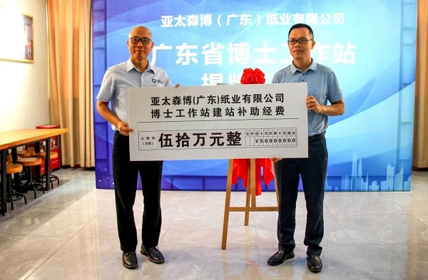 根據(jù)廣東省人力資源和社會保障廳《關(guān)于廣州醫(yī)科大學(xué)附屬腫瘤醫(yī)院等206家單位設(shè)立廣東省博士工作站的通知》,亞太森博(廣東)紙業(yè)有限公司獲批設(shè)立廣東省博士工作站。7月16日,新會區(qū)在亞太森博(廣東)紙業(yè)有限公司(簡稱:亞太森博紙業(yè))舉辦了亞太森博紙業(yè)博士工作站揭牌儀式。