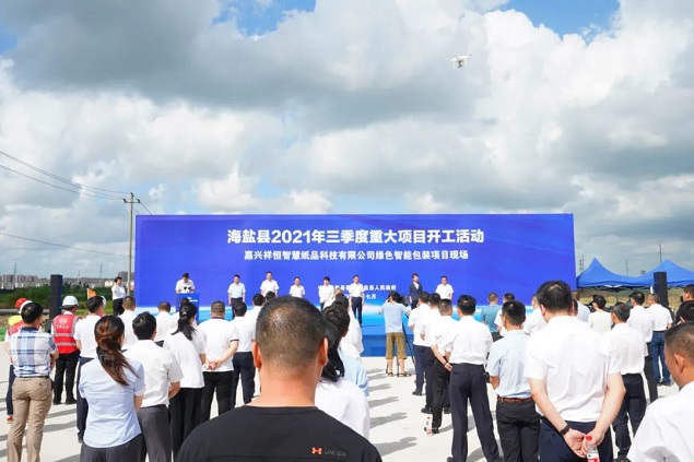 7月21日上午,海鹽縣2021年三季度重大項目開工活動在海鹽經濟開發(fā)區(qū)(西塘橋街道)舉行。據(jù)了解,本次區(qū)(街道)開工項目14個、竣工(投運)項目13個,總投資82.73億元。嘉興祥恒智慧紙品科技有限公司綠色智能包裝項目(年產10億平方米特強高檔環(huán)保紙板建設項目)也在當天開工,再次擂響狠抓重大項目建設的“戰(zhàn)鼓”。