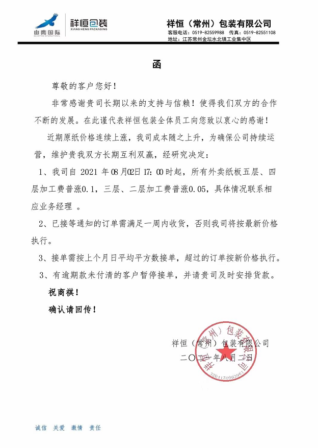 進(jìn)入八月,隨著上游紙企宣布漲價(jià),部分地區(qū)紙板廠也開始陸續(xù)跟漲發(fā)布漲價(jià)函。