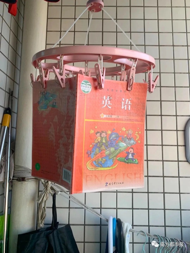 因味道難聞有家長將課本掛在家中通風處晾曬。