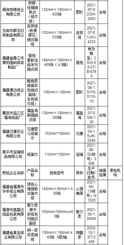 表2福建省紙巾紙產(chǎn)品質(zhì)量省級(jí)監(jiān)督抽查結(jié)果(不合格)