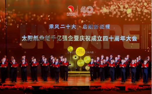 李洪信董事長表示,回望奮斗歷程,太陽紙業有三個“必須堅持”的關鍵經驗:必須堅持聽黨話、跟黨走。沒有黨的改革開放,就沒有太陽紙業的發展;沒有黨和政府的支持,就沒有太陽紙業的輝煌。必須堅持為員工、為社會。讓大伙過上好日子,走好共同富裕的路子,這是建廠時的初衷,更是太陽紙業使命的精神實質。必須堅持做實業、做主業。踏踏實實辦好主業、心無旁騖改革創新是公司發展永恒的主題。公司全體干部職工要把黨的二十大精神轉化為干事創業的強大動力,永葆艱苦奮斗的初心本色,堅定創建千億強企發展信心,以勇爭一流的格局向高而攀,以創新求變的作為迎新而生,以責任擔當的情懷致遠而行!中國式現代化一定有太陽的力量! 李洪信董事長指出,展望未來,太陽紙業將堅定不移地走好高質量發展之路;堅定不移地落實創新驅動發展戰略;堅定不移地融入雙循環發展新格局;堅定不移地推進共同富裕,更好地實現“發展為了員工,發展依靠員工、發展成果由全體員工共享”;堅定不移地推動綠色發展,促進人與自然和諧共生;堅定不移地踐行社會責任;堅定不移地踐行太陽文化,弘揚企業家精神,凝聚磅礴精神力量,為中國造紙產業綠色低碳高質量發展、為開創濟寧爭先進位和高質量發展新局面做出新的、更大貢獻!