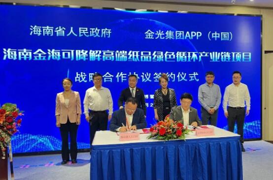 根據(jù)此次戰(zhàn)略合作協(xié)議,海南省人民政府與金光集團(tuán)APP(中國)將本著“長期合作、互利共贏”的原則,充分發(fā)揮海南自由貿(mào)易港的政策和區(qū)位優(yōu)勢,以及金光APP(中國)品牌、業(yè)務(wù)、資金、產(chǎn)業(yè)等強(qiáng)項,在金海漿紙現(xiàn)有的基礎(chǔ)上,分步推動下游產(chǎn)業(yè)鏈發(fā)展,助力產(chǎn)業(yè)經(jīng)濟(jì)綠色循環(huán)可持續(xù)增長,共享合作機(jī)遇,共建“雙循環(huán)”新發(fā)展格局,為中國式現(xiàn)代化再立新功!