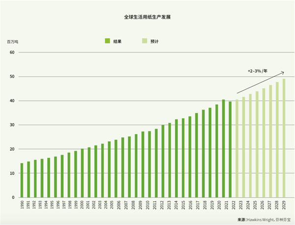 雖然市場仍被經濟不確定性的陰影所籠罩,但潛在趨勢將進一步推動多用途、負責任生產木漿的長期需求。 2022年,在通脹加速、利率上升和俄烏沖突所帶來的負面影響下,全球經濟增長預期有所下降。這對全球木漿市場也有直接和間接的影響。 “木漿市場可能出現短期動蕩。”咨詢公司Brian McClay & Associates(BMA)合伙人John Litvay說。 基于全球經濟增長放緩的預測,BMA下調了對2022年和2023年木漿市場增長的預期。消費增長預計為每年1.7%。 AFRY管理咨詢總監Tomi Amberla也認為短期前景比以往更具挑戰性。通貨膨脹、經濟增長放緩和全球政治局勢可能導致木漿需求下降。 “木漿需求每年都在變化。它受總體經濟發展的影響很大。”他指出。 長期增長穩定 不過,專家表示,木漿市場的長期增長前景并未改變。 “我們預計,未來10到20年,木漿需求將以平均每年2.5%的速度增長。”Litvay說。 在去年為芬蘭森林工業聯合會進行的一項研究中,AFRY估計,全球木漿市場將以每年1-3%的速度增長,一直持續到2035年。Amberla表示這個估計仍然成立。 咨詢公司Hawkins Wright總監Oliver Lansdell表示,木漿市場增長的一大關鍵驅動力是生活用紙消費量的增長,尤其是在新興市場。大多數生活用紙由商品漿制成。 “長期看來,我們預計生活用紙需求將以每年2%至3%的速度增長。”他估計。 大趨勢支撐需求增長 生活用紙消費量與城市化和消費者購買力等大趨勢緊密相關,而這些趨勢仍在保持增長,并且在新興經濟體中尤其顯著。 “隨著包裝紙板和生活用紙產品的使用量不斷增加,全球大趨勢正在支撐基本木漿需求的增長。這將為長期需求增長打下堅實基礎。當然,不同年份之間還會繼續存在周期性波動。”Amberla說。 增長型產品類別的一個典型示例是生活用紙制成的衛生產品,例如衛生紙、擦手紙和手帕紙。 同時,隨著新興經濟體居民生活水平的提高,木漿基紙板和其他包裝材料的需求也在增長。越來越多的消費者開始從雜貨店購買包裝食品,而不再去傳統的市場攤位。 快速增長的在線購物行業也需要更多包裝材料來運輸產品。