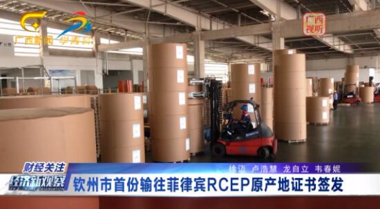 憑借RCEP項下輸往菲律賓的原產地聲明,APP中國廣西金桂漿紙出口的一批100噸淋膜紙,在菲律賓可享受零關稅優惠;這也是欽州市首份輸往菲律賓的RCEP原產地證明。