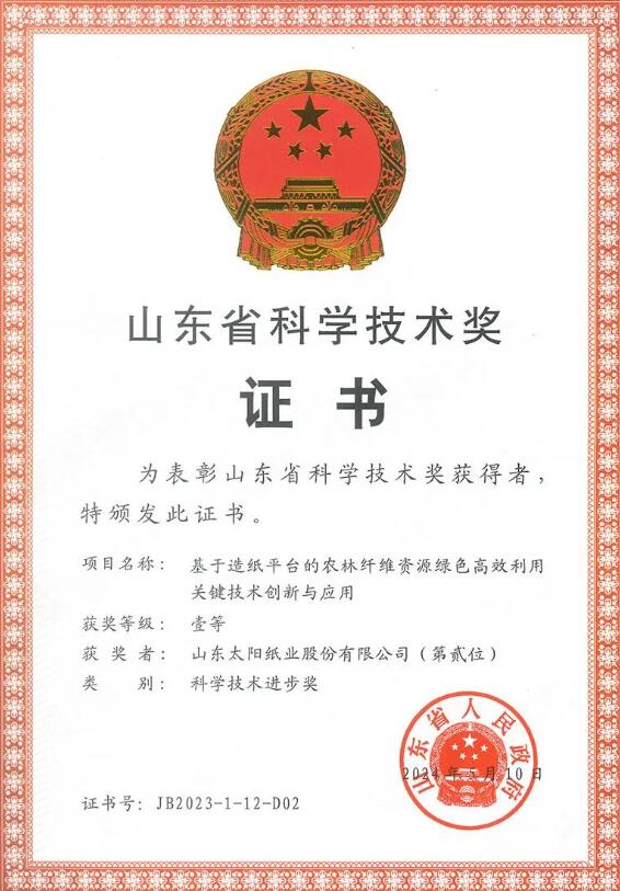 7月26日下午,山東省科技大會在濟南召開。會上,宣讀了《山東省獲2023年度國家科學技術獎項目名單》《山東省人民政府關于2023年度山東省科學技術獎勵的決定》。其中,太陽紙業與齊魯工業大學等單位共同完成的“基于造紙平臺的農林纖維資源綠色高效利用關鍵技術創新與應用””項目,榮獲山東省科技進步一等獎。 據了解,該項目開展了基于造紙過程的纖維原料各組分清潔分離利用、微納米纖維素制備技術、木質素高值化利用、半纖維素提取利用等關鍵技術研發,形成了具有自主知識產權的關鍵技術體系,項目核心技術處于國際領先水平,不僅助力拓展產業鏈,在行業內多家企業得到推廣應用,也為造紙工業的發展提供新的機遇和方向。