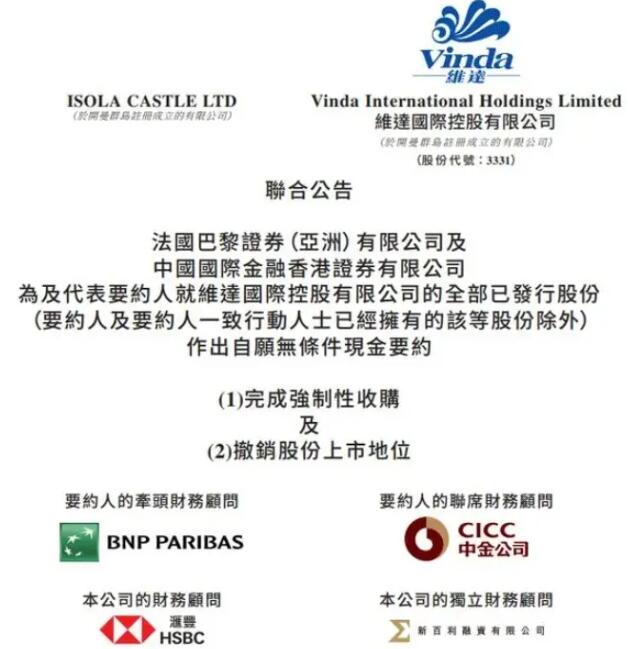 于2024年8月15日,強制性收購已完成,所有余下要約股份已轉(zhuǎn)讓予要約人。應(yīng)付余下要約股東的強制性收購代價款項總額已由要約人支付予維達國際,其于一個獨立銀行賬戶中以信托方式為余下要約股東持有該等款項,直到所有余下要約股東已獲支付強制性收購代價或者強制性收購完成日期起計六年屆滿(以較早者為準)。