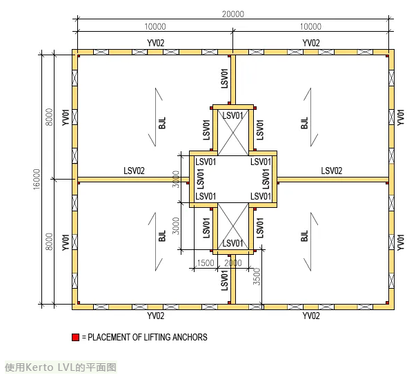 Kerto LVL(單板層積材)作為公寓樓的承重木框架材料,無論是在新建筑、翻新還在現有建筑之上增加樓層時,都是理想的選擇。與傳統木材相比,使用Kerto LVL可以減少高達50%的結構材料需求。 Kerto® LVL不僅是一種優于鋼和混凝土的選擇,也超越了其他基于木材的解決方案。Kerto LVL的強度-重量比接近于鋼,使得在建造承重結構時可以使用更少的材料,從而實現更輕的構件、更低的排放以及更多的居住空間。 例如,在承重外墻構件中,將140毫米厚的CLT(交叉層積材)更換為69毫米厚的Kerto LVL Q面板(具有相同的承重能力),可以減少51%的木材使用量,同時使墻構件的厚度減少71毫米。對于公寓的每15米外墻,可以額外獲得1平方米的可出售或出租的居住面積。 該建筑遵循瑞典規范,設計為8層住宅樓,平面尺寸為20x16米。它滿足消防安全要求,承重墻的防火等級為R90.樓板為R60.建筑確保了聲學舒適性,隔墻根據聲學設計師的建議被分類為聲學等級B。