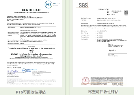 金鳳凰®水性阻隔食品卡EPP已獲得多項(xiàng)國(guó)際權(quán)威認(rèn)證,包括PTS可回收性評(píng)估、歐洲可回收性評(píng)估、ABA工業(yè)堆肥認(rèn)證等。這些認(rèn)證表明該產(chǎn)品不僅符合國(guó)內(nèi)環(huán)保要求,也達(dá)到了國(guó)際標(biāo)準(zhǔn)。 與傳統(tǒng)PE淋膜工藝相比,EPP生產(chǎn)技術(shù)具有減塑、降碳等優(yōu)勢(shì),同時(shí)具備可回收,易成型,無(wú)硅、無(wú)蠟、無(wú)氟等特性。